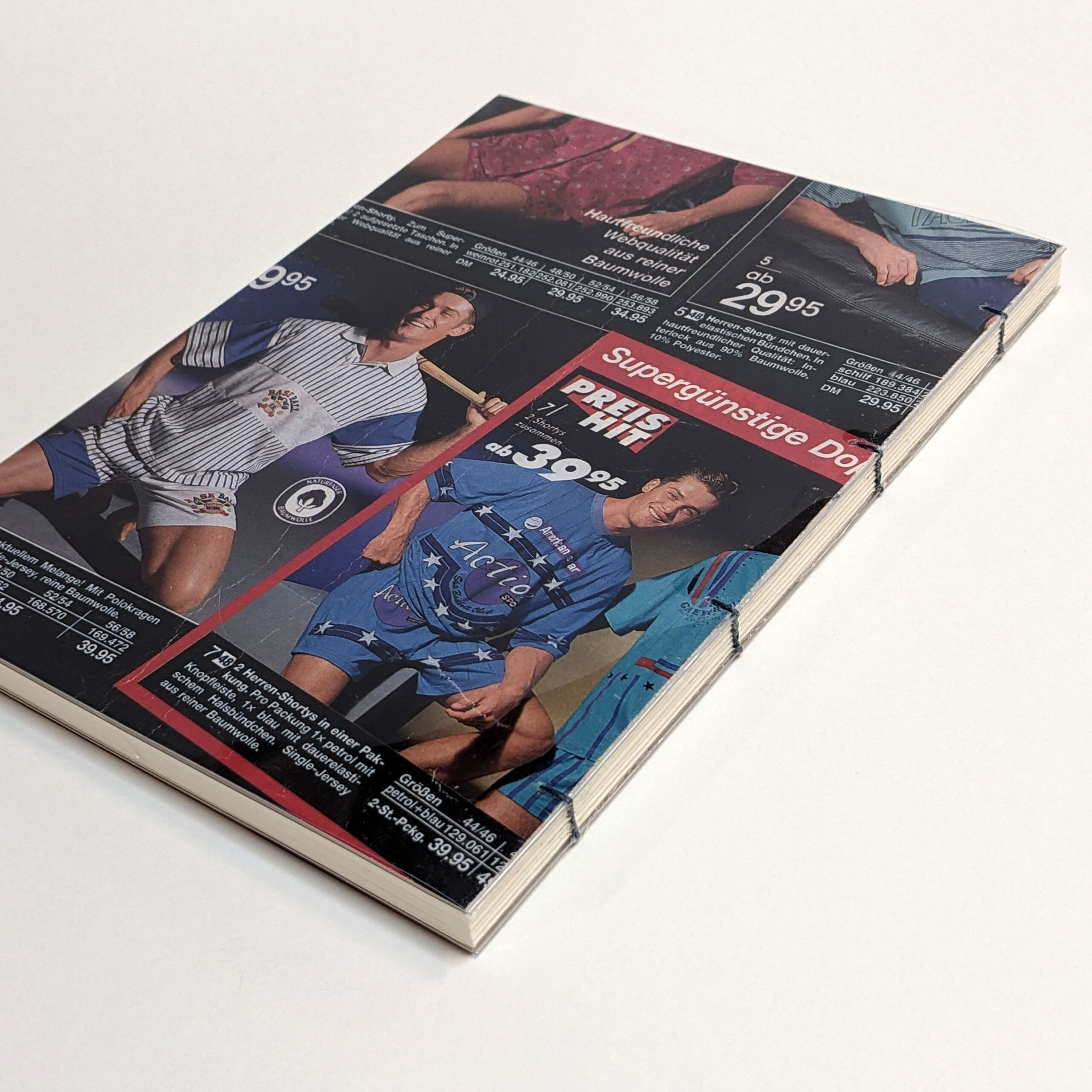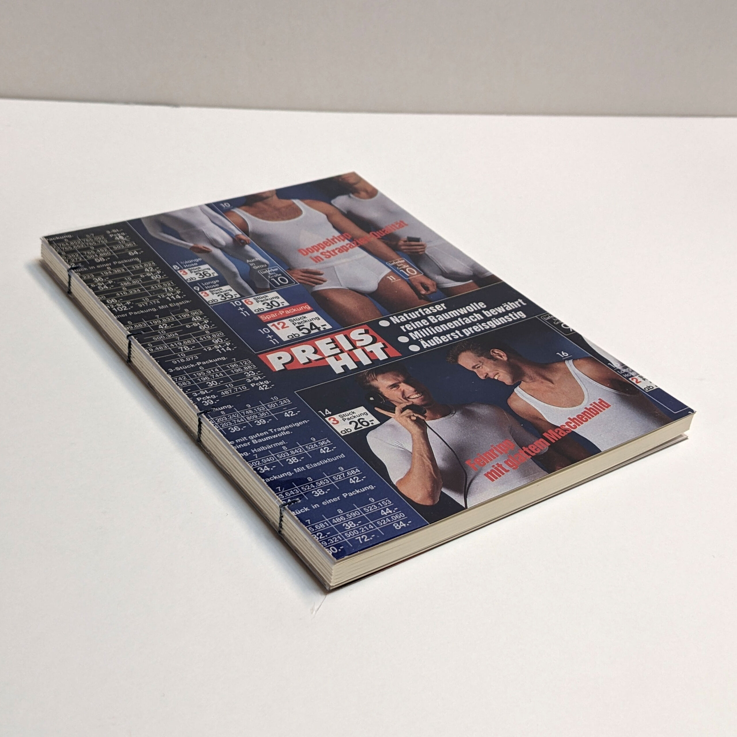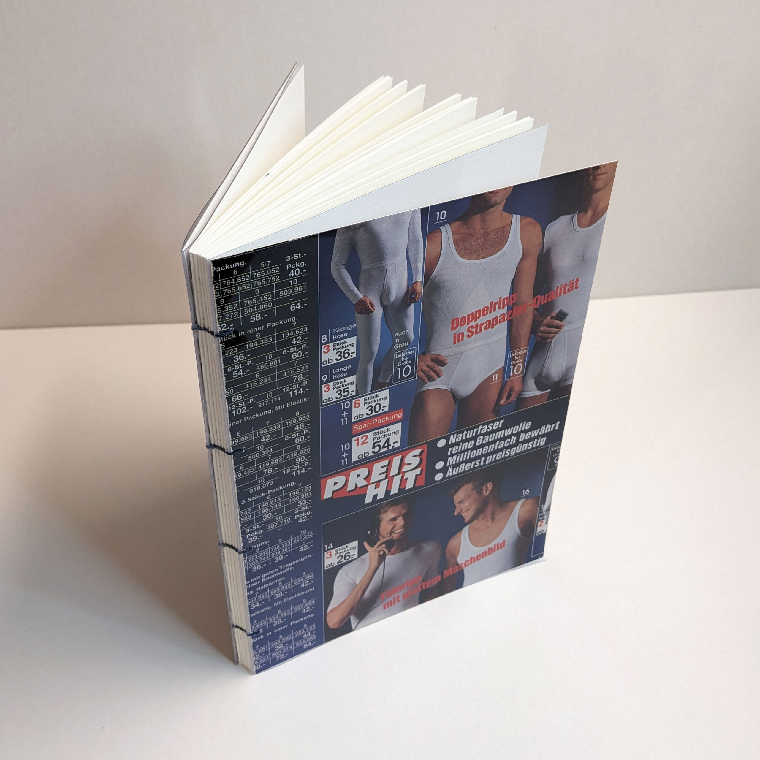 Handmade sketchbook. Every book’s cover is an original cutting form 90’s Otto shopping catalogues from Germany. 90’s aesthetics and style guaranteed! Each notebook is unique. Coptic Stitch Binding Cover: laminated original cut, also covered in transparent plastic for bonus protection and style Size: A5 Paper: Munken Pure 100 g/m2 Inside: blank paper Pages: 80