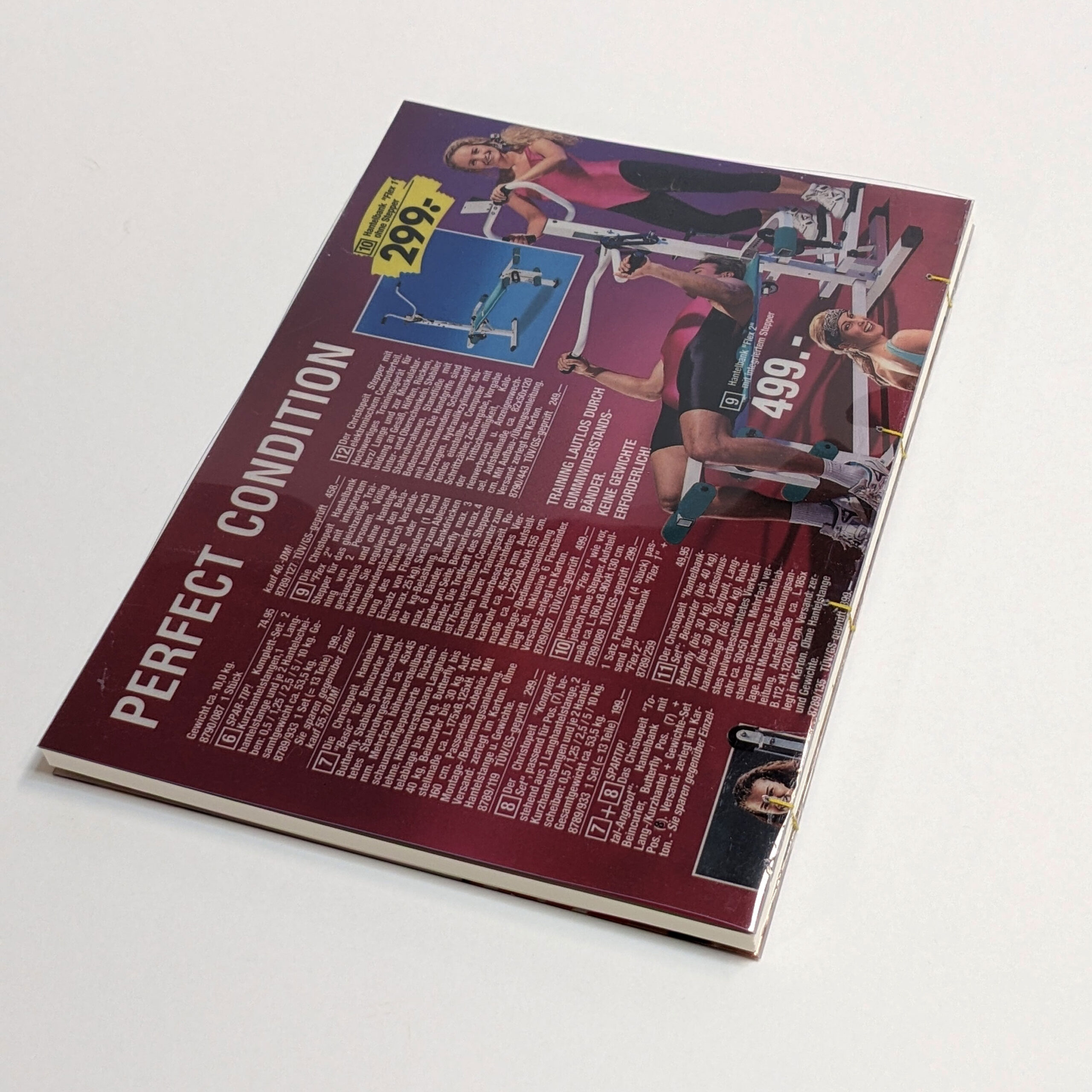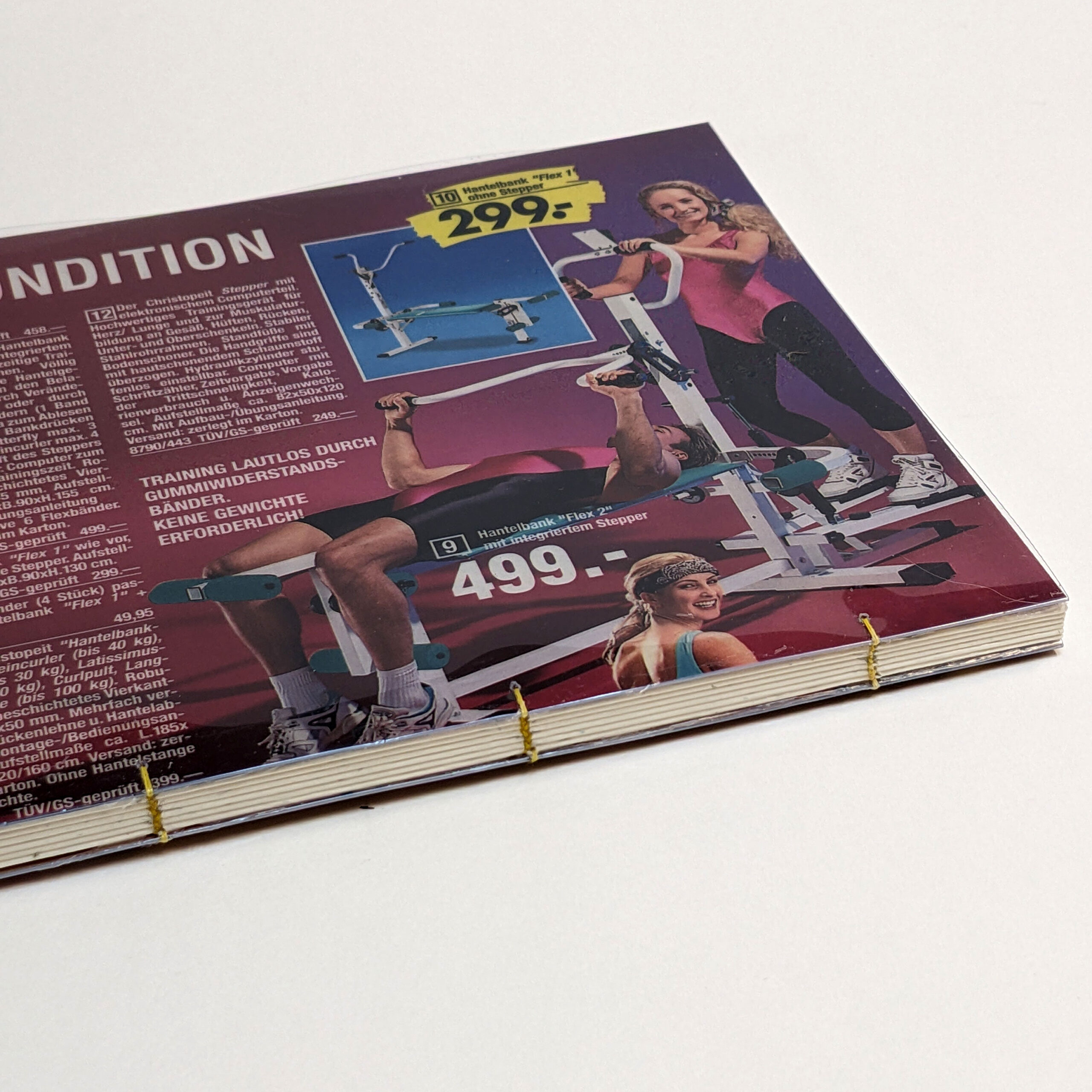Handmade sketchbook. Every book’s cover is an original cutting form 90’s Otto shopping catalogues from Germany. 90’s aesthetics and style guaranteed! Each notebook is unique. Coptic Stitch Binding Cover: laminated original cut, also covered in transparent plastic for bonus protection and style Size: A5 Paper: Munken Pure 100 g/m2 Inside: blank paper Pages: 80