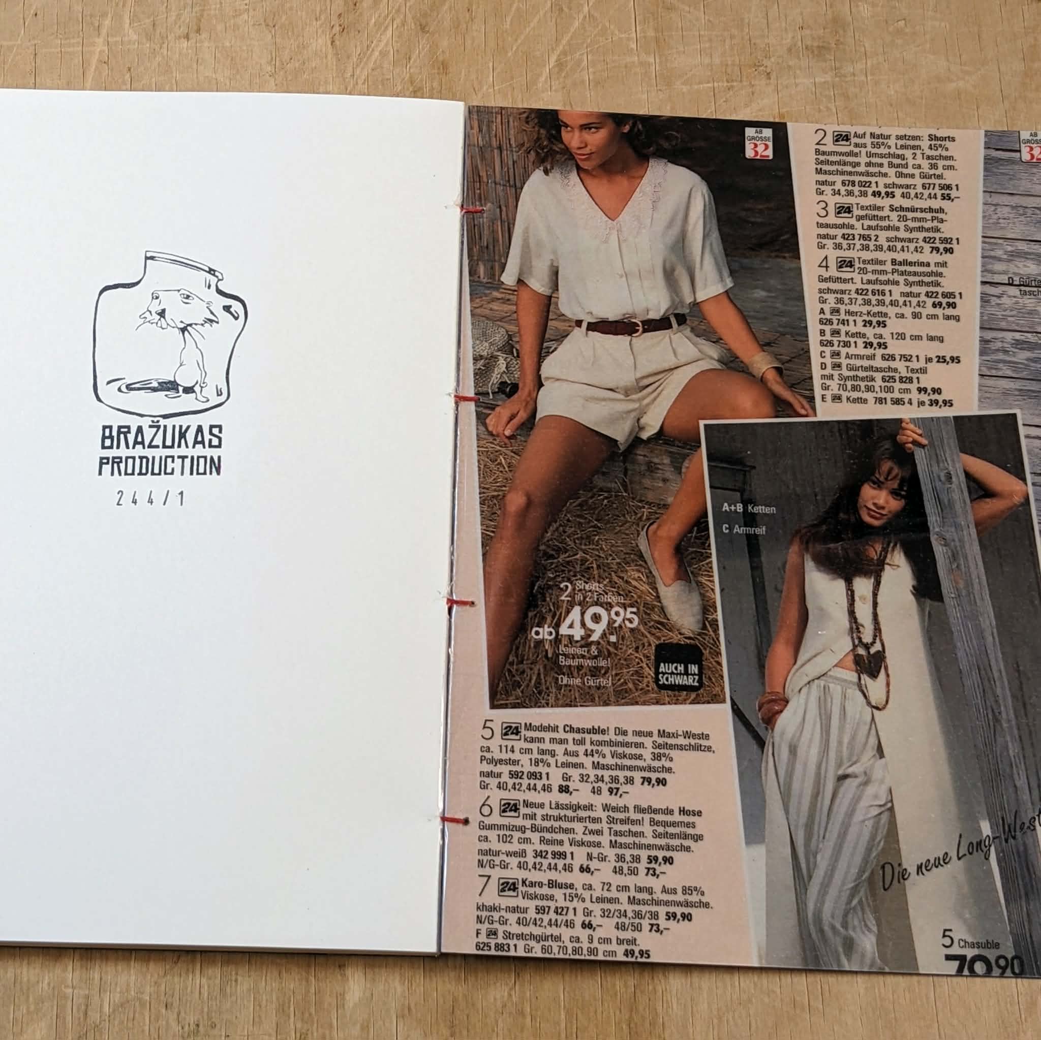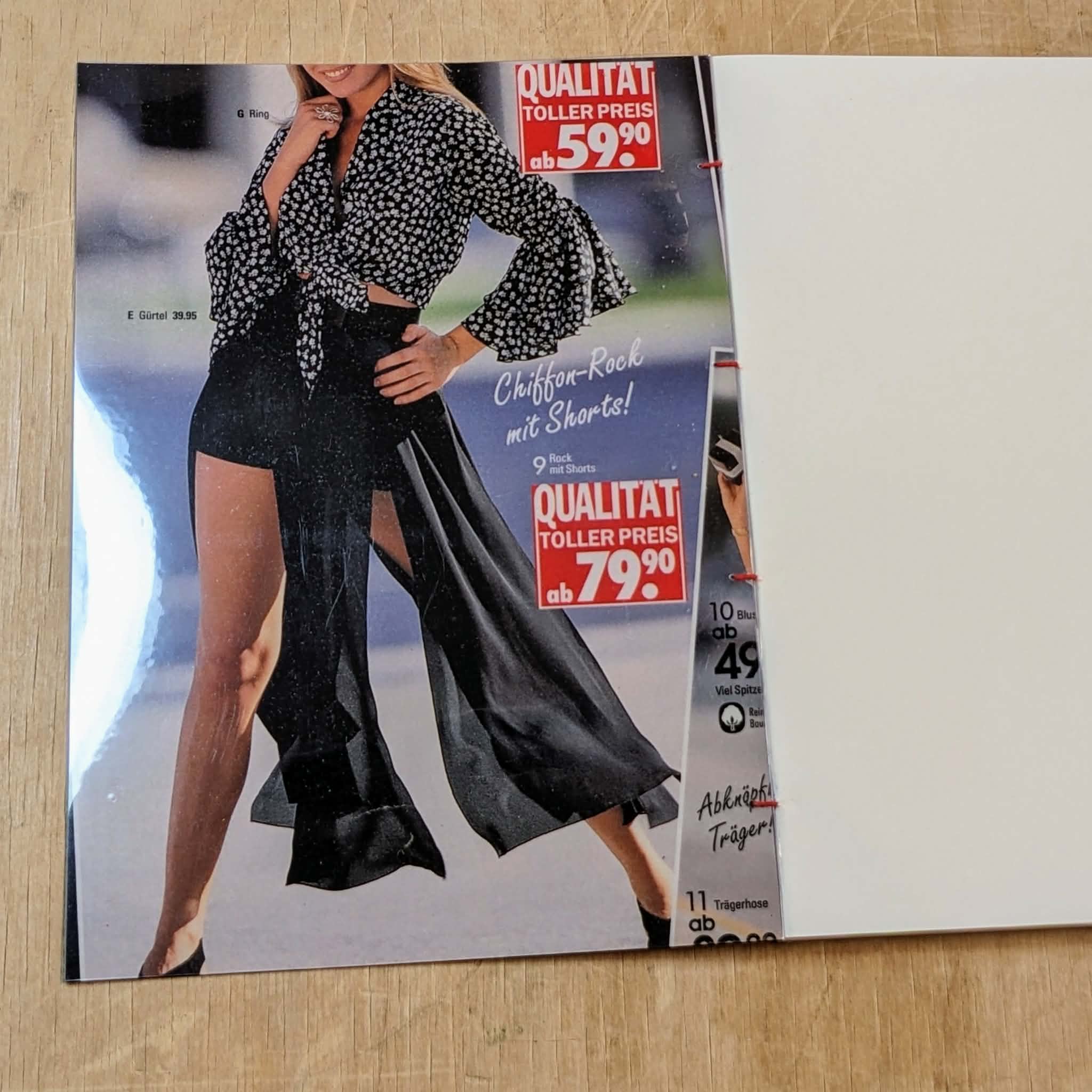 Handmade sketchbook. Every book’s cover is an original cutting form 90’s Otto shopping catalogues from Germany. 90’s aesthetics and style guaranteed! Each notebook is unique. Coptic Stitch Binding Cover: laminated original cut, also covered in transparent plastic for bonus protection and style Size: A5 Paper: Munken Pure 100 g/m2 Inside: blank paper Pages: 80
