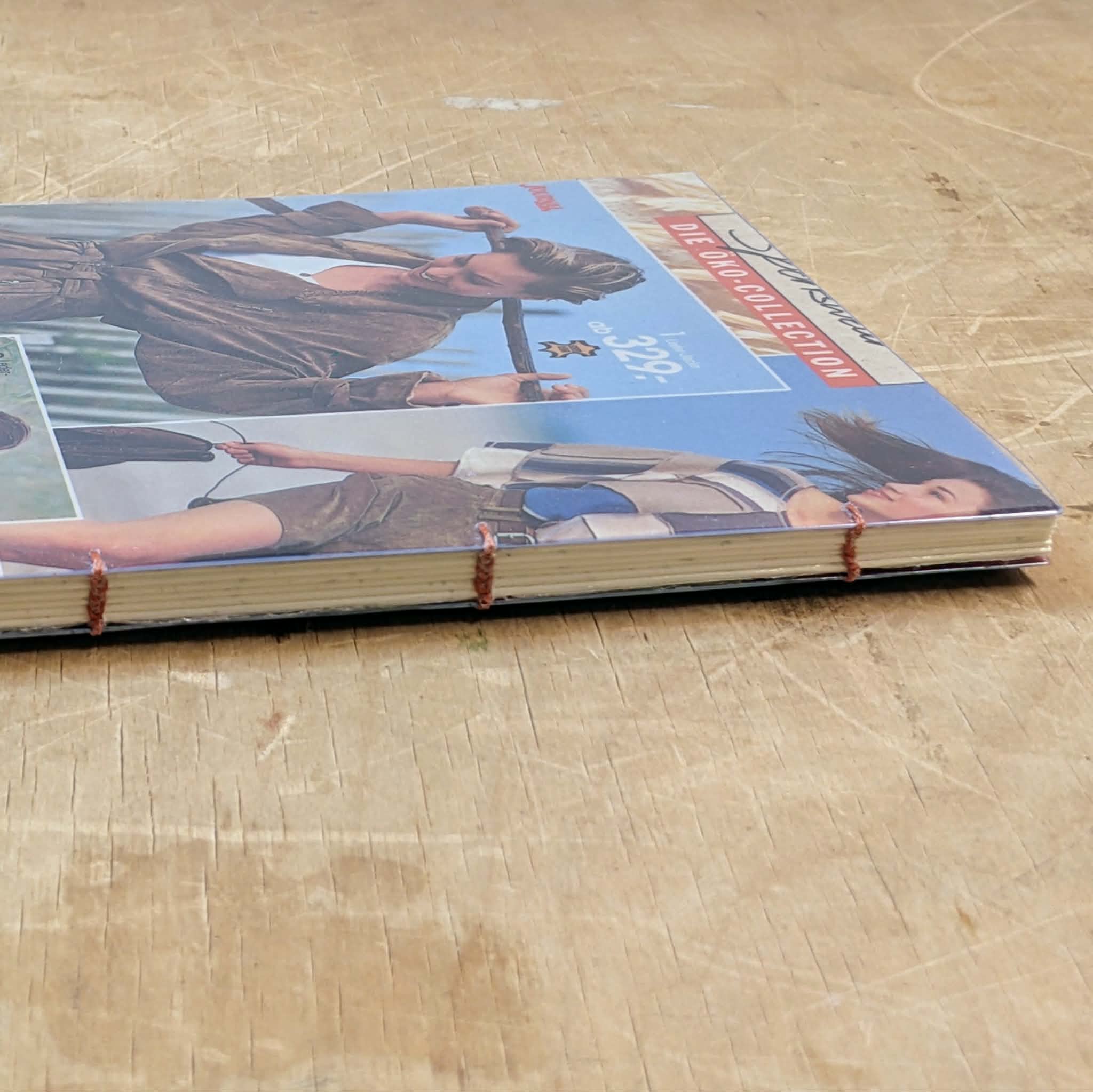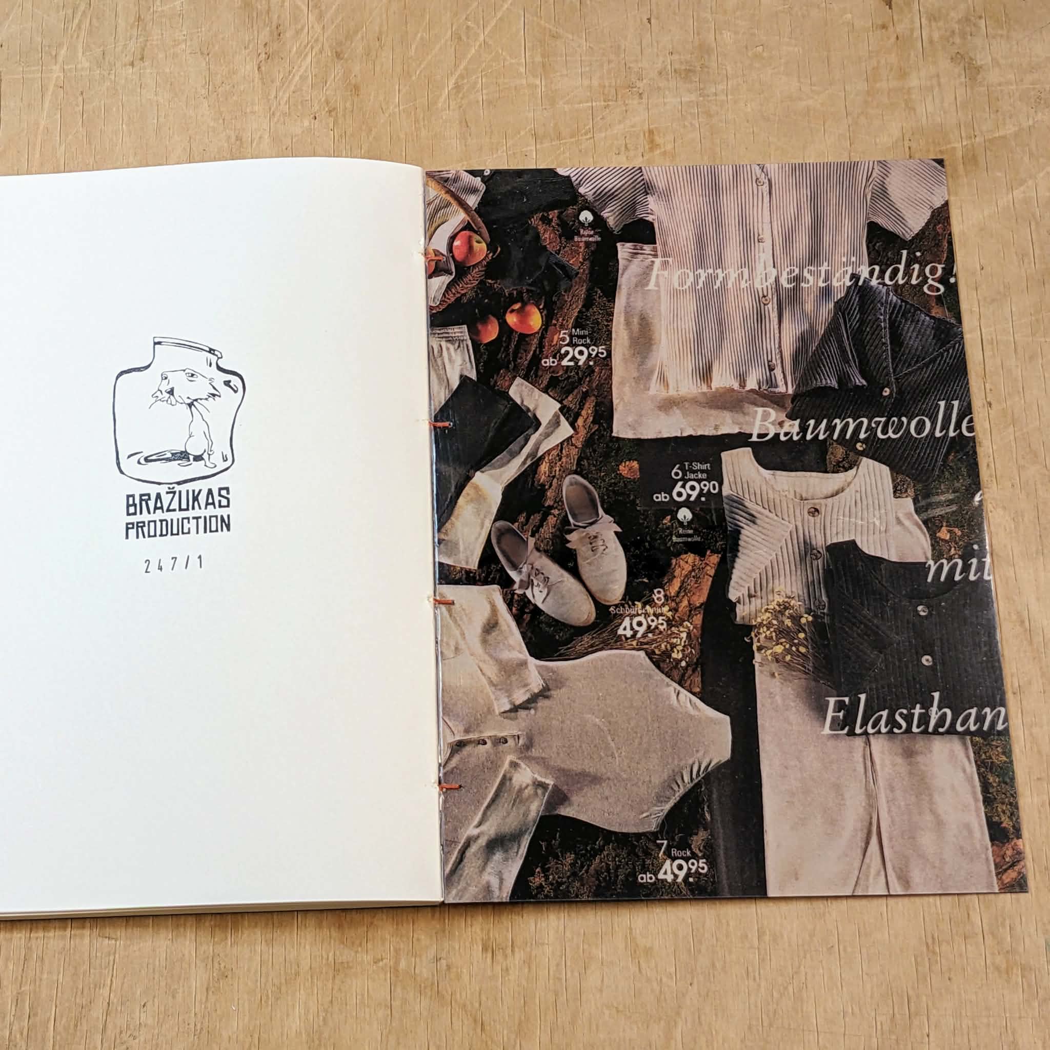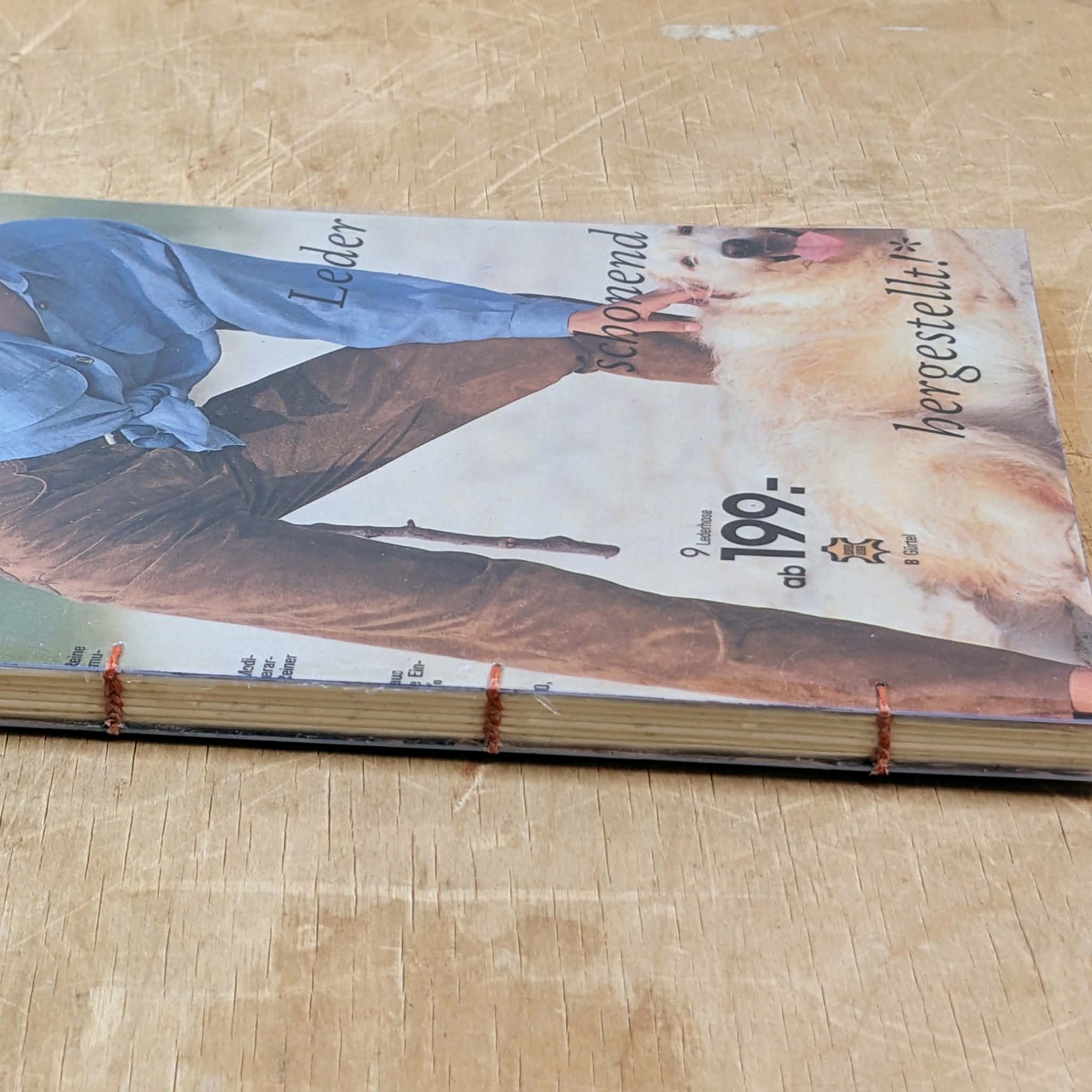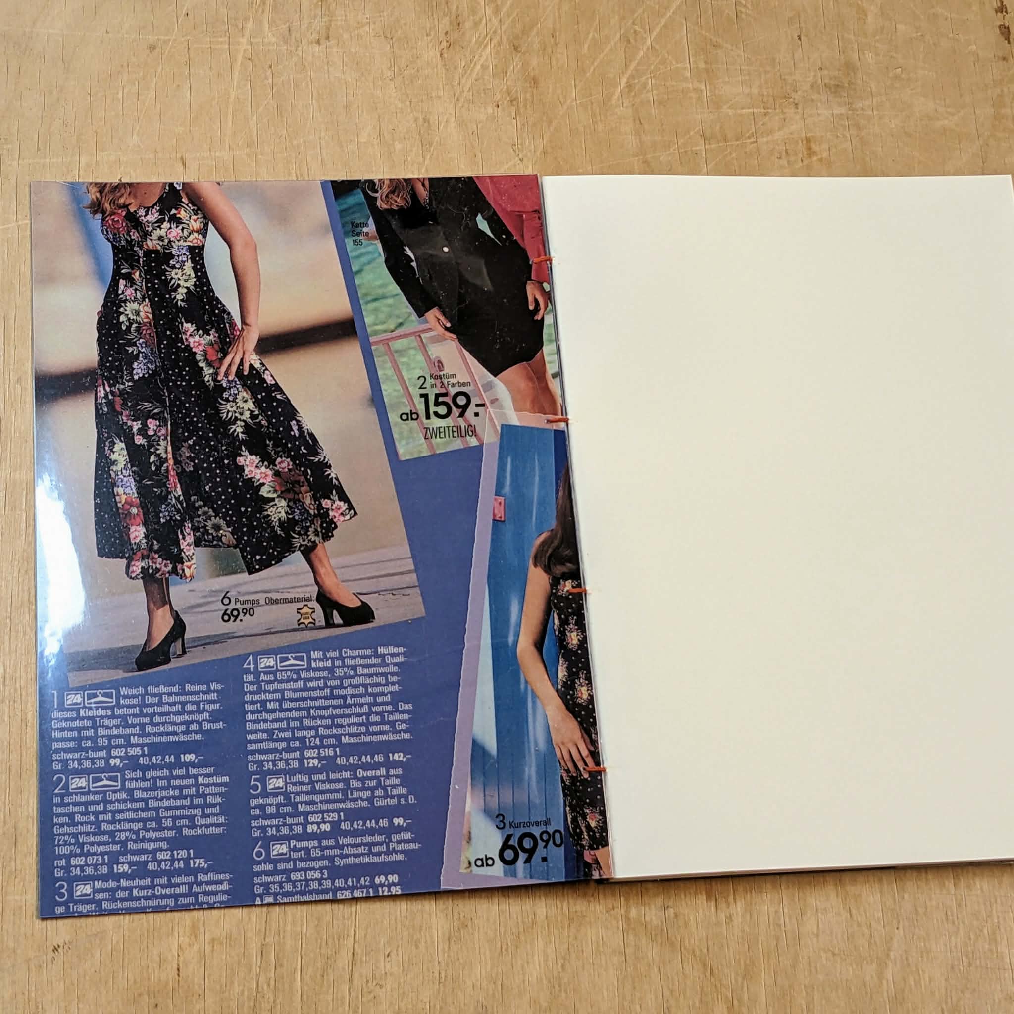 Handmade sketchbook. Every book’s cover is an original cutting form 90’s Otto shopping catalogues from Germany. 90’s aesthetics and style guaranteed! Each notebook is unique. Coptic Stitch Binding Cover: laminated original cut, also covered in transparent plastic for bonus protection and style Size: A5 Paper: Munken Pure 100 g/m2 Inside: blank paper Pages: 80